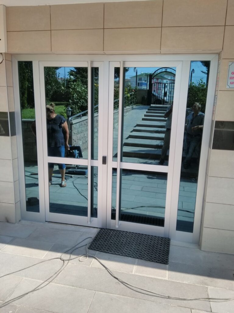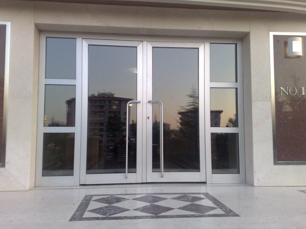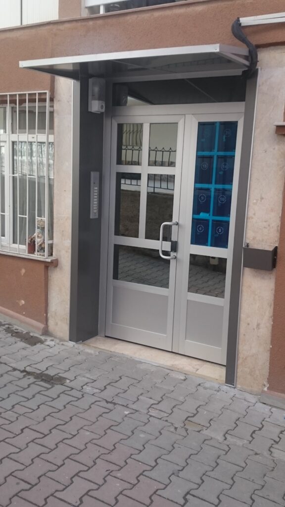 Mimari çizim ölçülü, görünüm şekli müşterinin talebine göre, yalıtımlı-yalıtımsız, natürel veya ral boyalı, alüminyum sistem kapı yapılması, kapı camlarının müşterinin isteğine göre temperli, renkli veya ısıcamlı, madeni aksam ve aksesuarlı, TSE ve CE belgeli, bina, site, apartman, villa girişlerine rüzgarlıklı, çift kapılı, posta kutulu, kart okuyuculu, şifreli, kilitli, doğrama ve cam kapılı rüzgarlık ve döner kapıların montajları firmamız tarafından itinalı olarak yapılmaktadır.