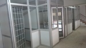 Müşteri ve firmaların tasarladığı talebe göre; çizim ölçülü, doğrama şekil ve görünüşlere dikkat edilerek natural, ral boyalı, yalıtımlı, yalıtımsız alüminyum ofis bölmesi işleri ve ofis camları müşterinin isteğine göre belirlenerek yapılmaktadır. Doğrama cam aksamları EPDM, conte fitilli montajları, TSE ve CE belgeli imalatı ve yerinde montajları firmamız tarafından özenle yapılmaktadır.
